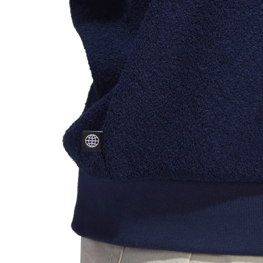 Keep warm on and off the golf course. This adidas crewneck sweatshirt has a cosy feel to keep you comfortable through chilly rounds. The cuffed sleeves ensure a stay-put fit so you can swing through without distractions. Wear it over a tee or polo shirt when the temperature drops. Made with a series of recycled materials, and at least 60% recycled content, this product represents just one of our solutions to help end plastic waste.
