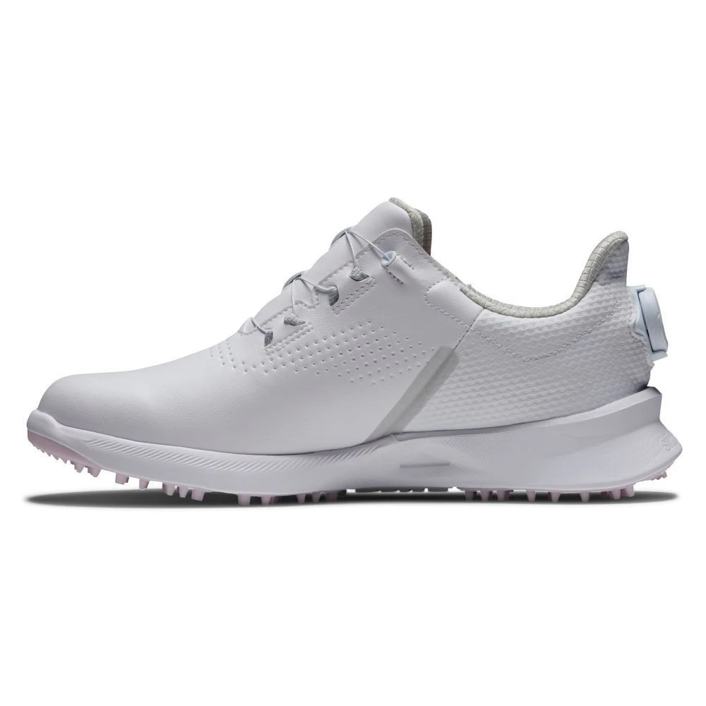 Full rounded toe character, fuller fit across forefoot, narrower fit in heel. Midfoot support through the swing comes from a patented Stability Bridge. Lateral support is also aided by the EVA midsole. Enhanced grip is provided by a Pro|SL inspired outsole. Easy to clean synthetic uppers