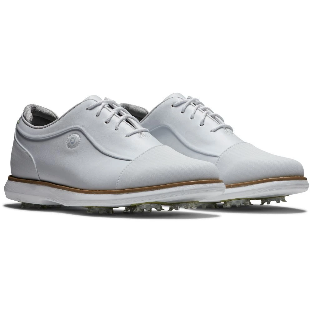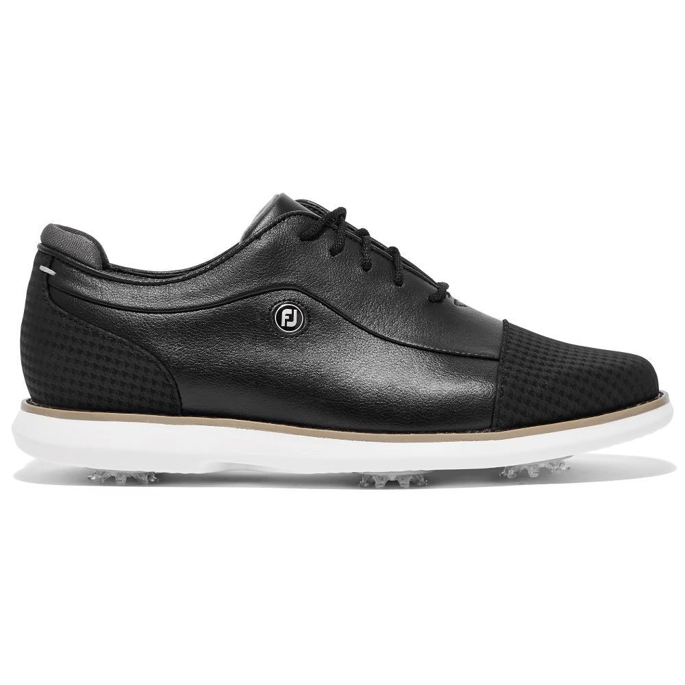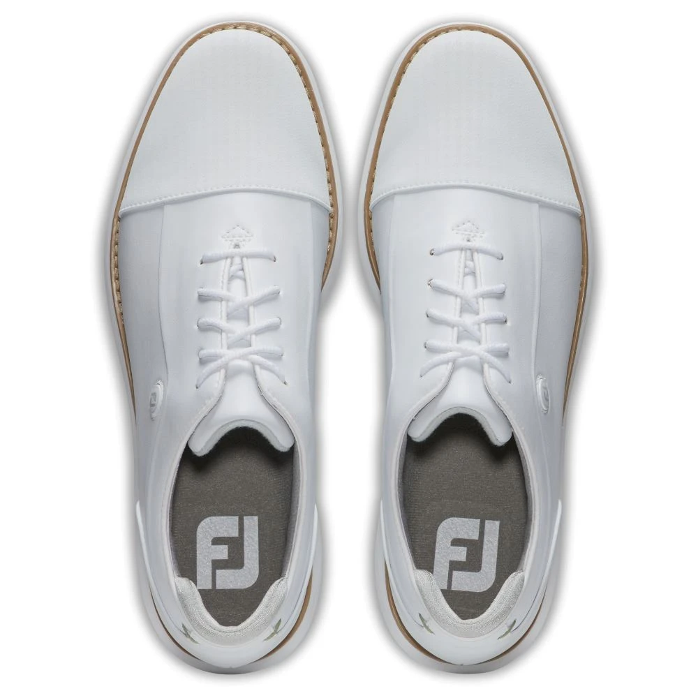Standard fit in the heel and instep with a slightly shallow and square forefoot. Extra depth last. Full grain leather upper. Foam midsole for lightweight comfort. Molded FitBed® for underfoot support and cushioning. Pulsar LP cleats by Softspikes. 1-Year Waterproof Warranty