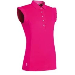 Fresh and feminine, beautifully combining pretty design and golfing functionality, the Daisy sleeveless golf polo shirt gives you great looks, but also all the freedom of movement your swing needs. The soft, smooth and fine fabric has a superb fit, with full 4-way stretch built in. The decorative placket and arm detail of this ladies’ golf shirt are attractively ruched for a frilled effect. Subtle gingham check detail fabric is added to the inner of the collar and underplacket, and for a little glamour, the buttons have glittering rhinestones embedded in them. The smart active fibre offers +40 UV protection against the effects of the sun, thermoregulates to release excess heat so you feel cool, and wicks away moisture to keep skin dry.