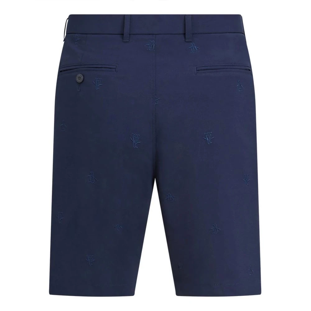 The Allover Pete Embroidered shorts are brand new this season from Original Penguin. Forming part of their golf collection, these slim-fit shorts are great for warmer weather. They are made from a stretch fabrication for wearing comfort with front and back pockets for small-item storage and silicone details inside the waistband to help keep your shirt in place. They have the signature Penguin logo embroidered all over in a tonal colour.