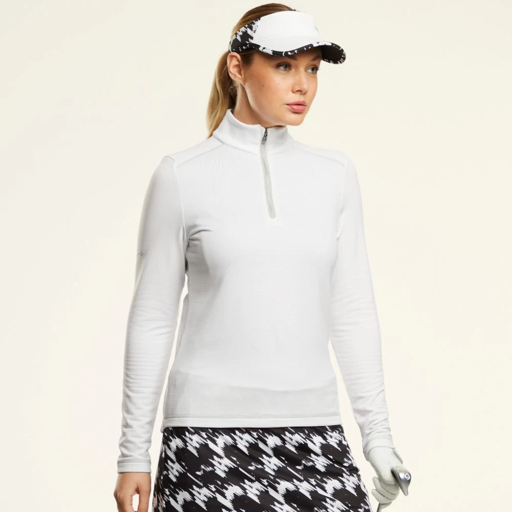 The Ping Ladies Sonya Golf Pullover is a performance grid-back fleece mid-layer, engineered for lightweight warmth and freedom of movement. Water-resistant so rain won’t soak straight through if you’re caught in a light shower, keeping you drier. Ping’s SensorWarm® thermal properties also trap warm air and resist wind-chill, keeping you warm with minimal weight and the stretch fabric allows you to move freely through your swing.
